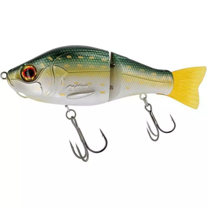 Ce swimbait « deux sections » a été développé à partir du design imaginé pour notre OTACHI. Son corps, à la fois compact et volumineux, était parfait pour obtenir un leurre capable d’évoluer sous la surface, à très faible vitesse. Sa taille de 135mm, son poids de 53.50gr sont parfaitement adaptés à la traque des gros brochets, sans pour autant avoir à utiliser un matériel démesuré. Mais sa plus grand aptitude est sans conteste sa capacité à se mettre en mouvement (nage sinusoïdale) avec une récupération linéaire ultra lente. La qualité de la touche sera alors incomparable! (Petite astuce : si vous devez ralentir au maximum votre SCUNNER et obtenir une nage plus ample, enlevez l’hameçon à l’arrière du leurre). Doté d’une attache sous la tête pour ajouter un lest (Jon Weight), le SCUNNER est capable d’évoluer plus profondément, à différentes hauteurs dans la couche d’eau. Il vous sera alors facile de l’adapter à la profondeur de prospection idéale de votre plan d’eau et/ ou selon la capacité du jour des poissons à « monter » pour attaquer une proie. Hameçon triple ventrale monté sur émerillon rolling. Queue amovible.