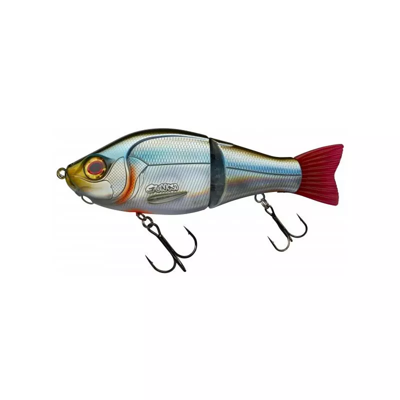 Ce swimbait « deux sections » a été développé à partir du design imaginé pour notre OTACHI. Son corps, à la fois compact et volumineux, était parfait pour obtenir un leurre capable d’évoluer sous la surface, à très faible vitesse. Sa taille de 135mm, son poids de 53.50gr sont parfaitement adaptés à la traque des gros brochets, sans pour autant avoir à utiliser un matériel démesuré. Mais sa plus grand aptitude est sans conteste sa capacité à se mettre en mouvement (nage sinusoïdale) avec une récupération linéaire ultra lente. La qualité de la touche sera alors incomparable! (Petite astuce : si vous devez ralentir au maximum votre SCUNNER et obtenir une nage plus ample, enlevez l’hameçon à l’arrière du leurre). Doté d’une attache sous la tête pour ajouter un lest (Jon Weight), le SCUNNER est capable d’évoluer plus profondément, à différentes hauteurs dans la couche d’eau. Il vous sera alors facile de l’adapter à la profondeur de prospection idéale de votre plan d’eau et/ ou selon la capacité du jour des poissons à « monter » pour attaquer une proie. Hameçon triple ventrale monté sur émerillon rolling. Queue amovible.